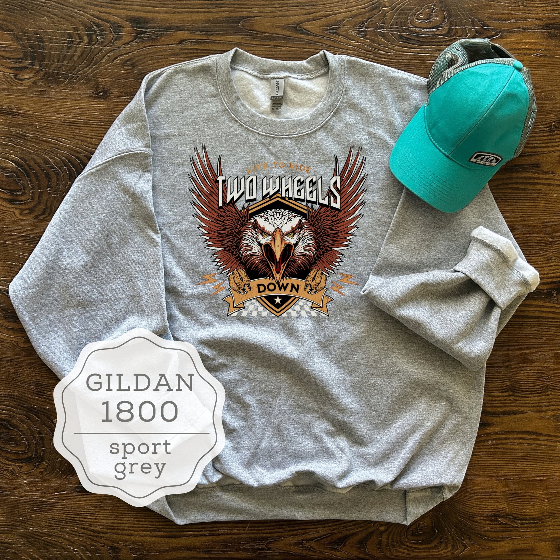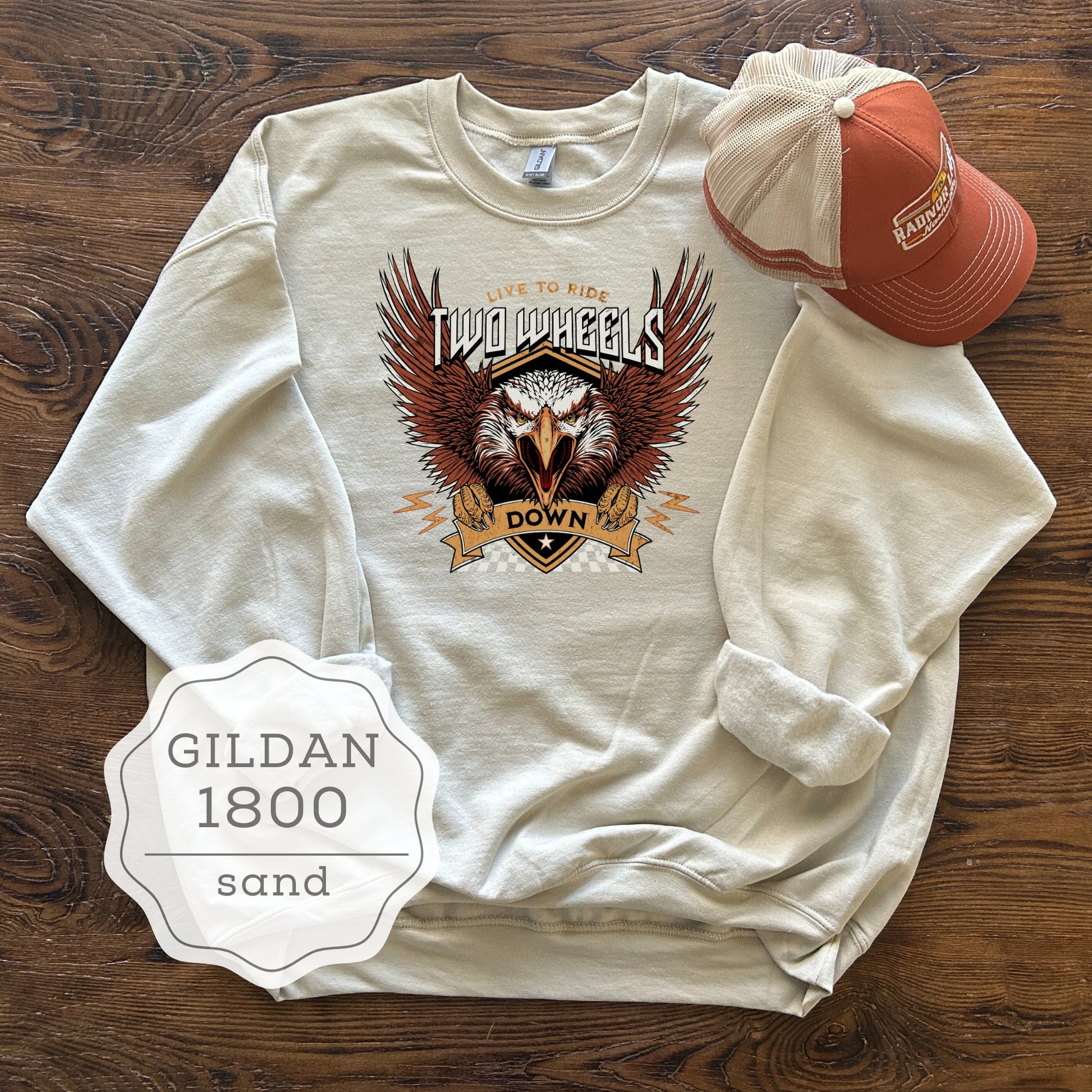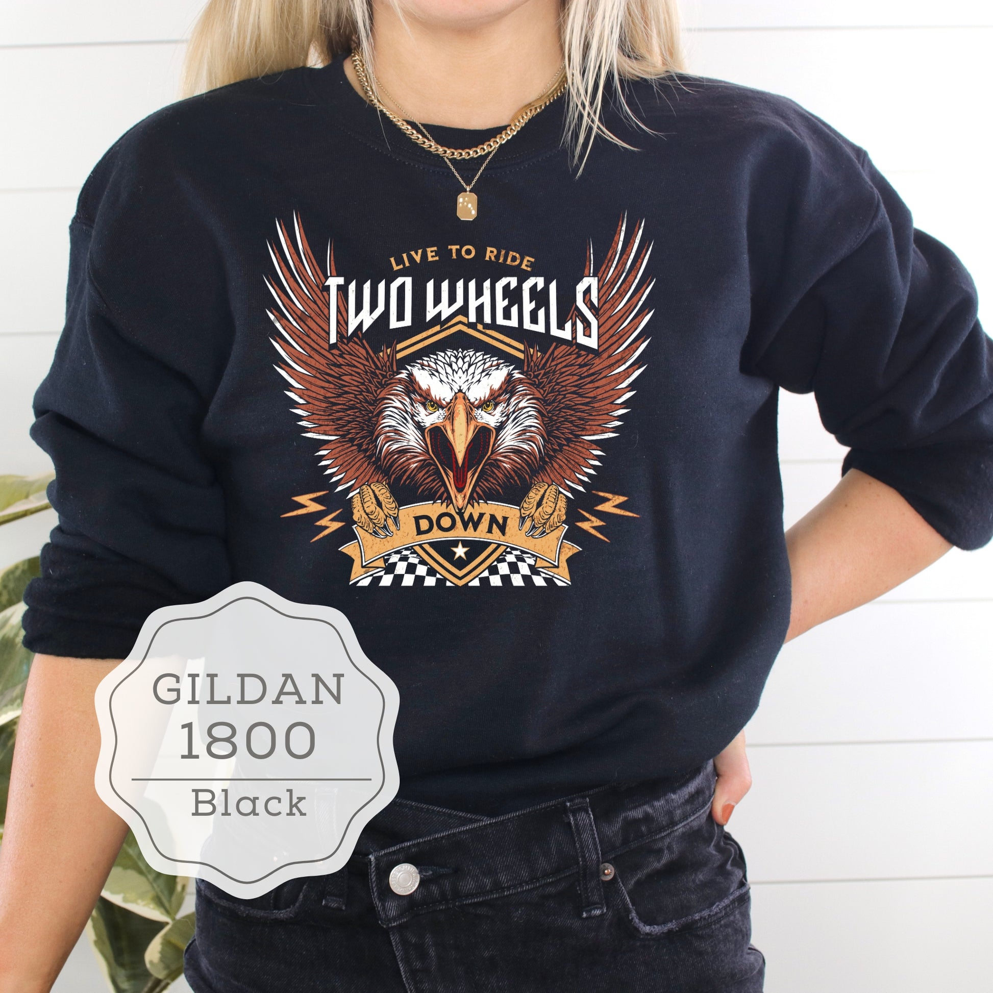 Women's Motorcycle Biker T-Shirt "Live to Ride Two Wheels Down" Sweatshirt 8.0 oz. G1800