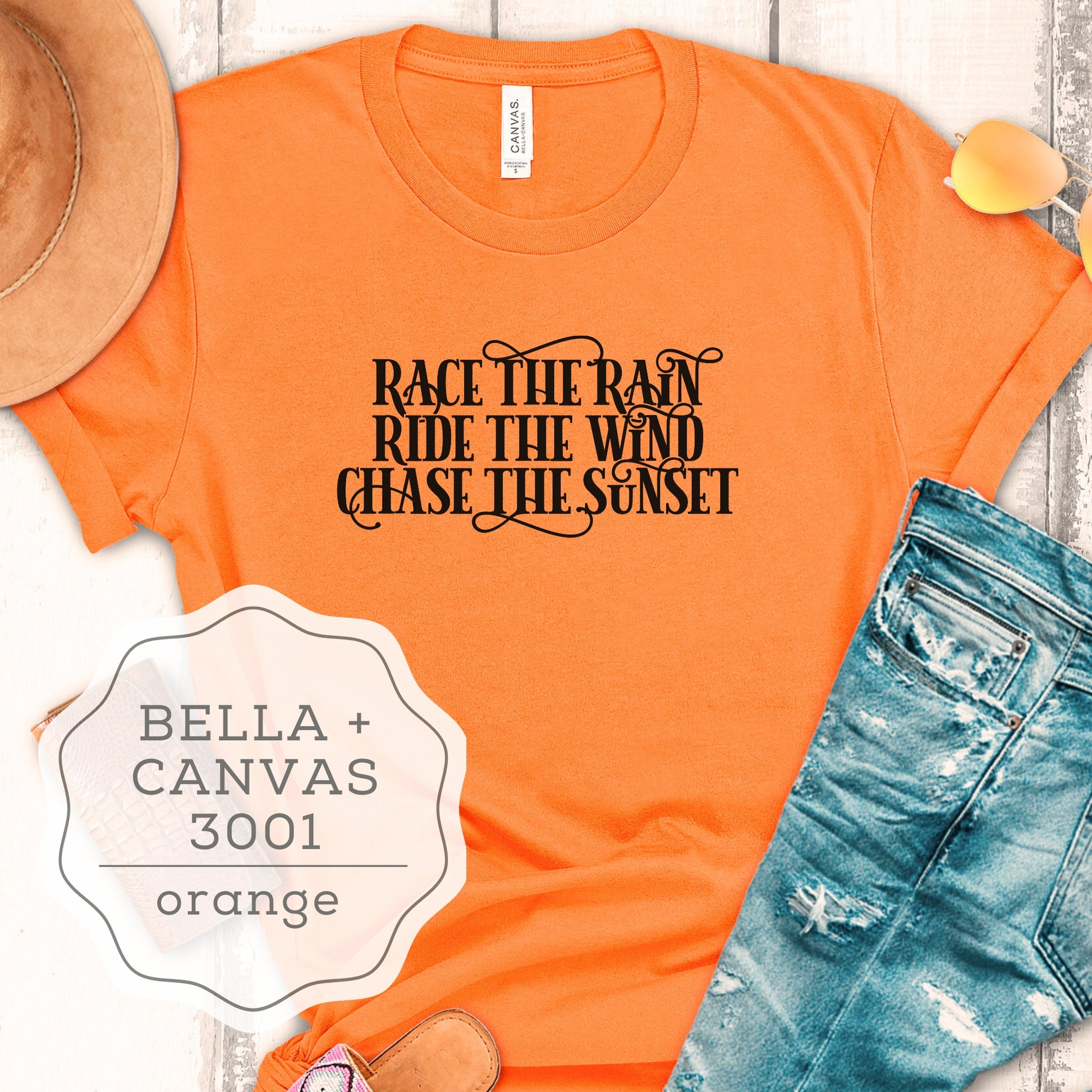 Looking for a stylish women's biker shirt? Check out our "Race the Rain, Ride the Wind, Chase the Sunset" design. It's perfect for the adventurous spirit who loves to feel the wind in their hair and the thrill of the ride. Order yours today!